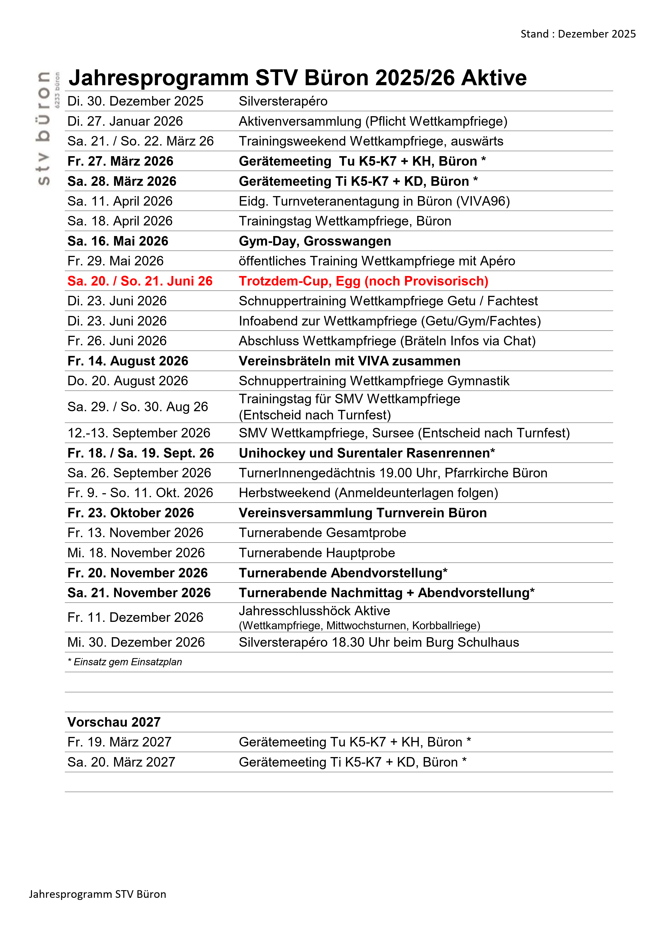 Jahresprogramm